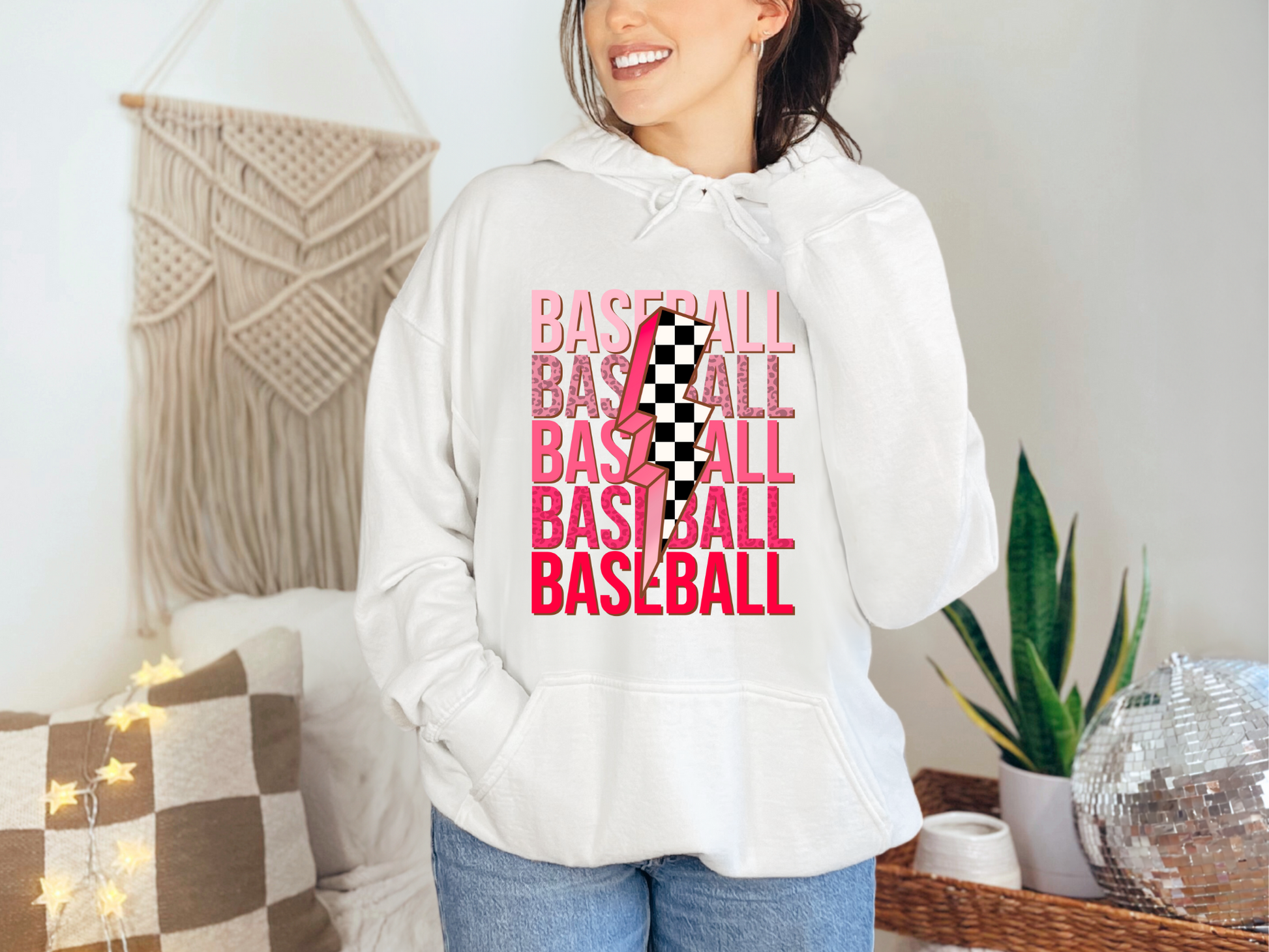 Baseball (pink checkered bolt)