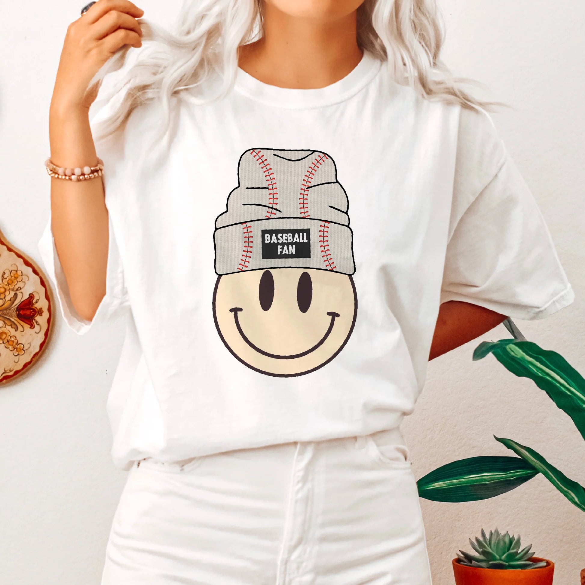 Baseball fan, beanie smiley