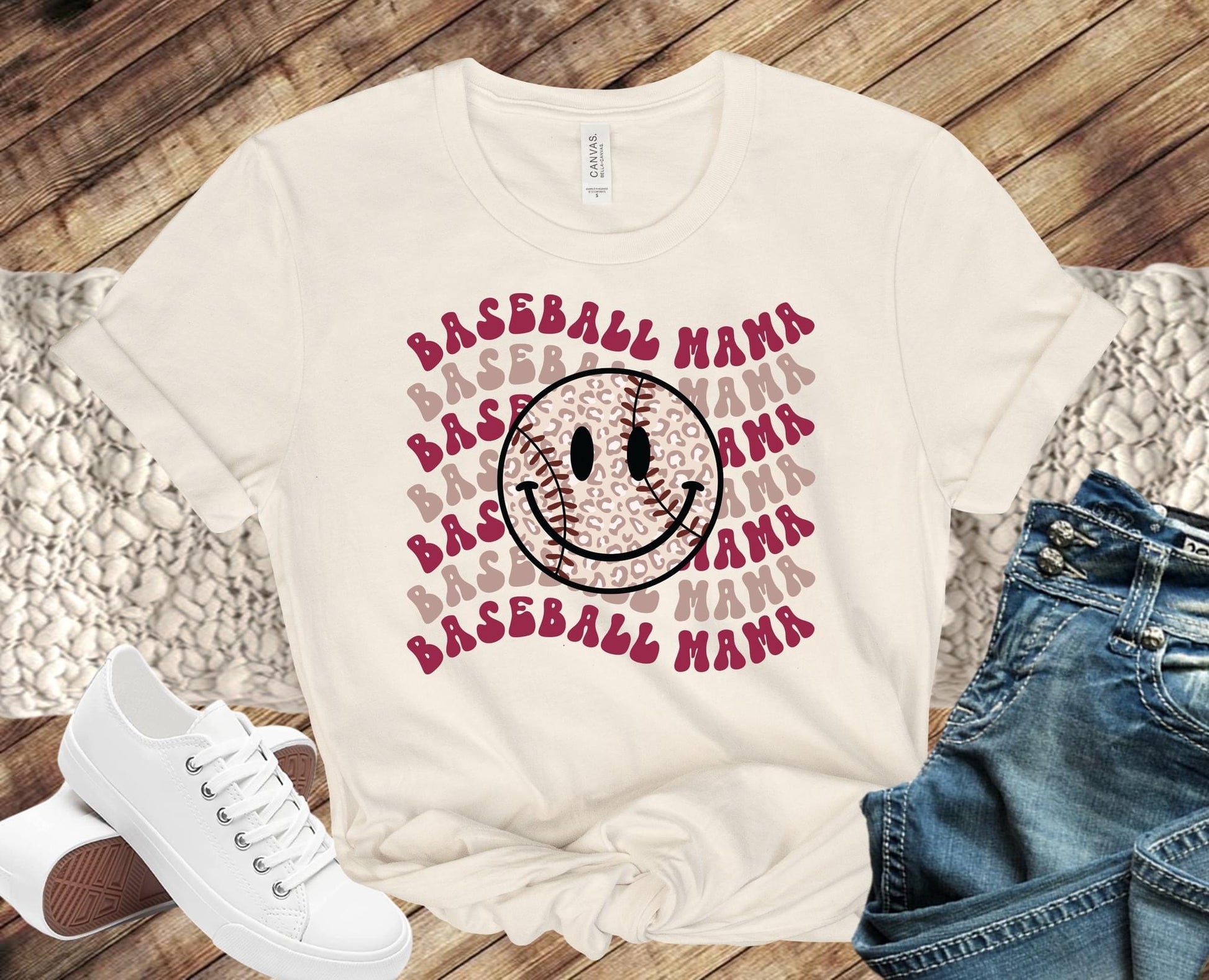 Wavy Stacked Baseball mama Smiley